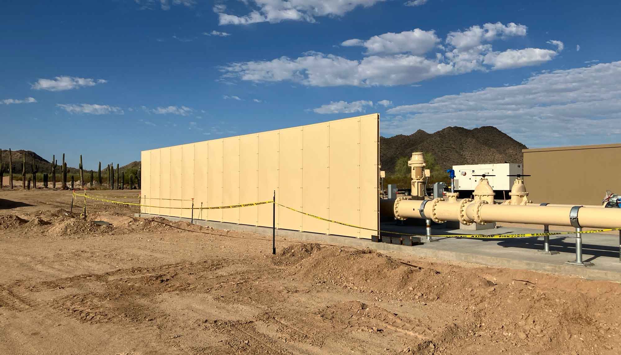 For noise from outdoor pumps, our patented AWSP’s not only act as a sound isolation barrier, but also have a high level of sound absorption. This aids in reducing the overall noise level around pumps. Attractive, sustainable walls can be created to visually and audibly conceal unsightly pump motors. If your budget requires a more cost effective solution, Acoustifence® may fit the bill. Acoustifence is ¼” thick, flexible barrier with some unique attributes.
